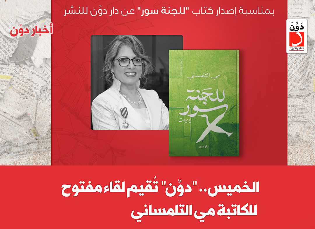 تُقيم دار “دوِّن” للنشر والتوزيع، لقاء مفتوح مع الكاتبة مي التلمساني وجمهورها من القراء، وذلك يوم الخميس 4 يناير. بمناسبة إصدار كتاب “للجنة سور” الصادر حديثا عن الدار.