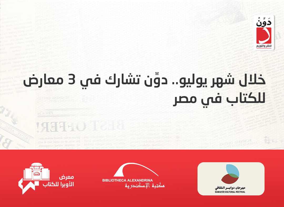 تشارك دار دوِّن للنشر والتوزيع في المعارض الثلاثة التي ستقام خلال الشهر، بإصدراتها المتنوعة والمختلفة.