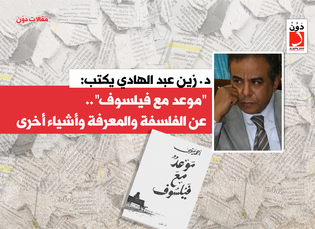 أشاد الكاتب د. زين عبد الهادي، المشرف على مكتبات مدينة الثقافة والفنون بالعاصمة الإدارية الجديدة، ورئيس دار الكتب الأسبق، بكتاب “موعد مع فيلسوف” للكاتب أحمد مهنى، والصادر عن دار دوِّن للنشر والتوزيع.