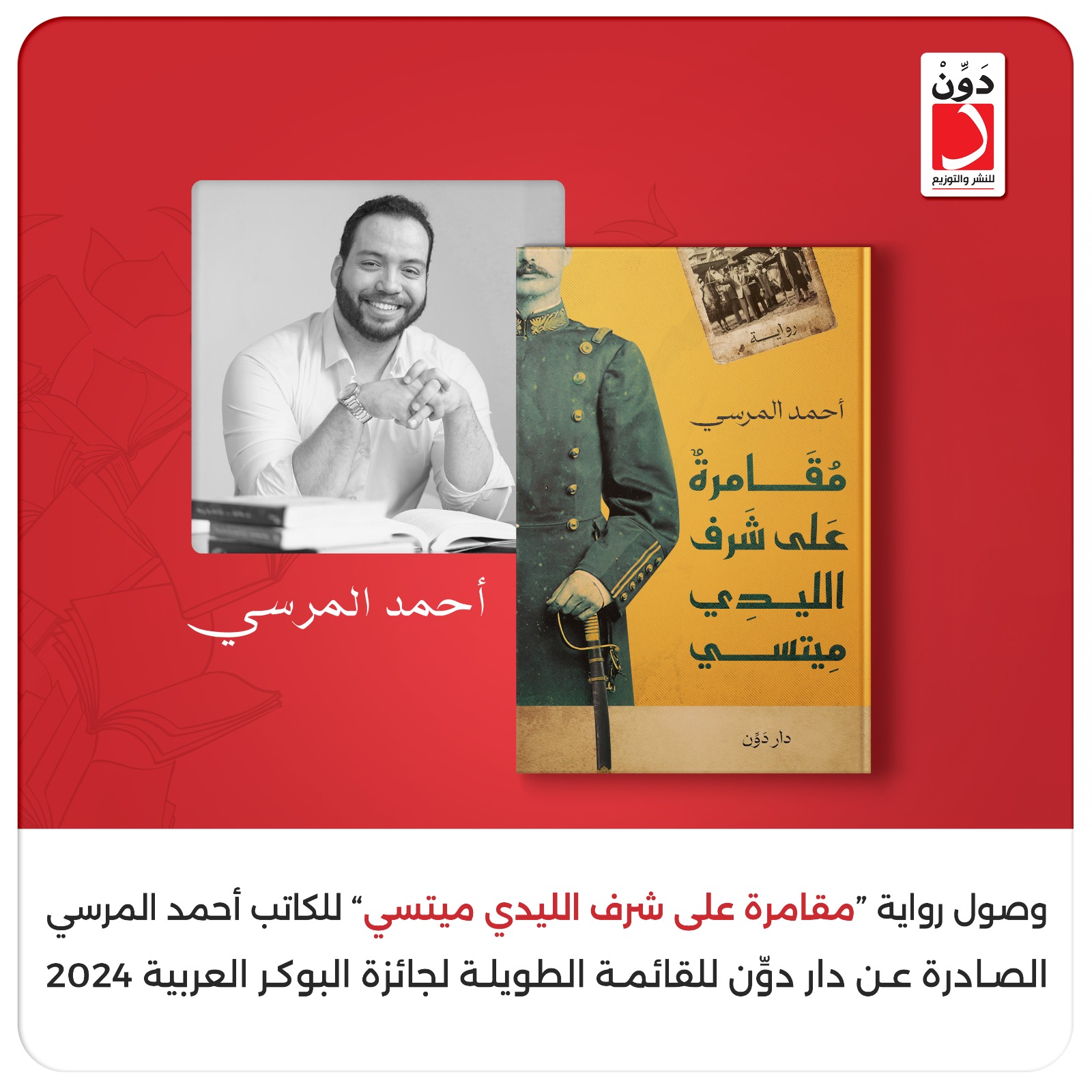 أعلنت الجائزة العالمية للرواية العربية عن الروايات المرشّحة للقائمة الطويلة بدورتها للعام 2024، والتي تبلغ قيمة جائزتها 50 ألف دولار أمريكي، حيث. وصل للقائمة الكاتب أحمد المرسي، عن روايته “مقامرة على شرف الليدي ميتسي” والصادرة عن دار دوِّن للنشر والتوزيع.