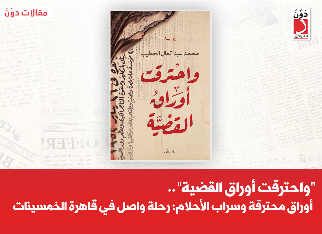 في رواية “واحترقت أوراق القضية” للكاتب والمستشار محمد عبد العال الخطيب، والصادرة عن دار دوِّن للنشر والتوزيع، يُبرز غلاف الكتاب صورة صحيفة محترقة الأطراف، مع مانشيت عريض متآكل يتحدث عن حريق القاهرة في عام 1952، مما يوحي بأن الحريق لم يترك حتى الصحف التي كتبت عنه سليمة.