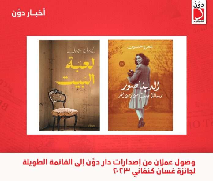 أعلنت وزارة الثقافة الفلسطينية، عن القائمة الطويلة لجائزة غسان كنفاني للرواية العربية في دورته الثانية للعام 2023، والتي وصل إليها كاتبان من دار دوّن للنشر والتوزيع، هما الكاتبة إيمان جبل عن روايتها “لعبة البيت” والكاتب عمرو حسين عن روايته “الديناصور”.